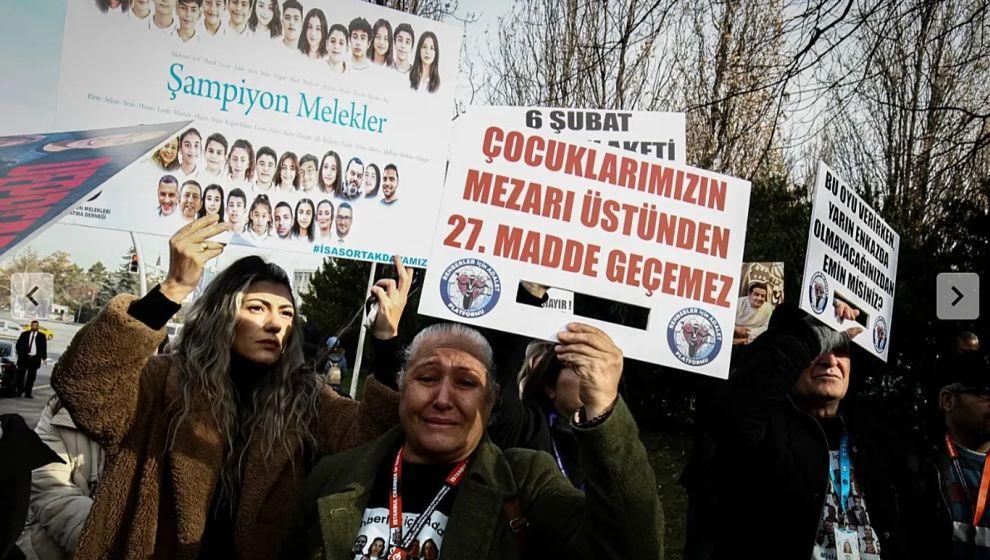 6 Şubat depremlerinde yakınlarını kaybeden aileler, deprem sanıklarının 11'inci Yargı Paketi’nin 27'inci maddesi kapsamı dışında bırakılması talebiyle Türkiye Büyük Millet Meclisi (TBMM) önünde nöbet başlattı.