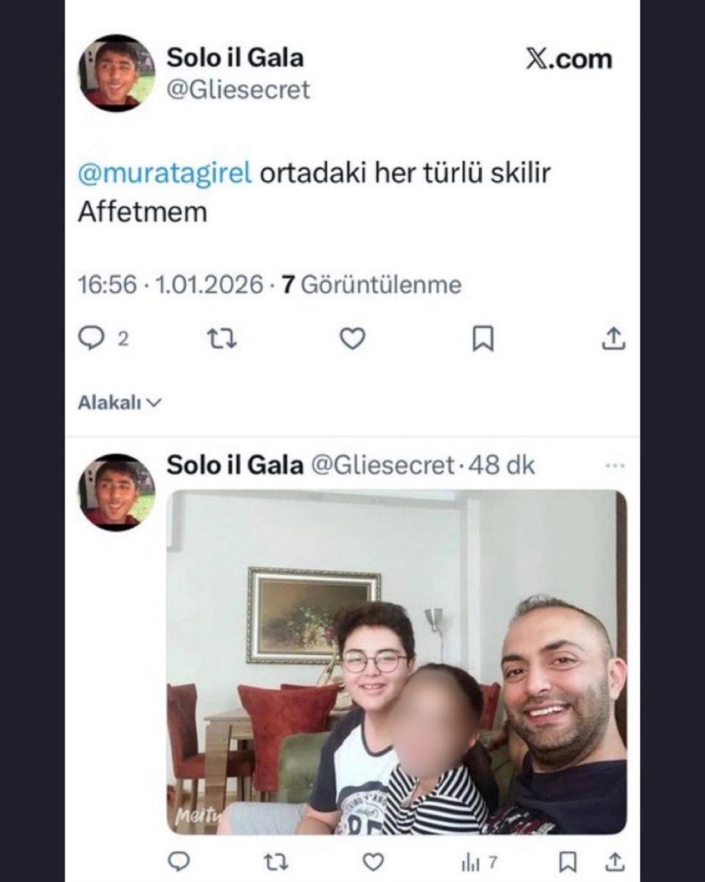Şimdi çıkıp “kınıyoruz, mınıyoruz” gibi samimiyetsiz açıklamalar yapmayın. Yaşananlar, bizzat sizin beni yalan ve yanlış bilgilerle hedef göstermenizin bir sonucudur. Yasa dışı bahis baronlarının çocuklarını kırmızı halıyla seremonilere çıkarırken gösterdiğiniz hassasiyet, konu rengine göre mi değişiyor? Kızım ve oğlum; sizin aptal futbol tartışmalarınızın, egolarınızın ve içinizdeki çirkefliğin tarafı değildir. Yetiyorsa gücünüz bana yetsin .Çocuklarımdan uzak durun."