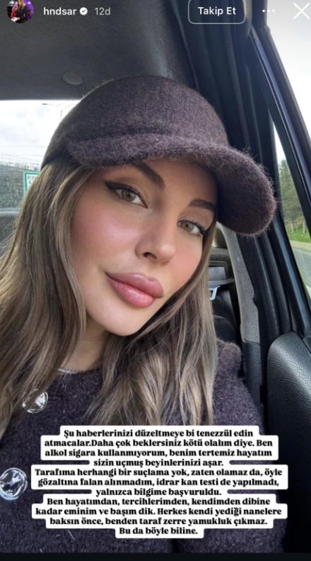Hande Sarıoğlu da sosyal medya hesabından yaptığı paylaşımda gözaltına alınmadığını, test örneği vermediğini belirtti ve 'sadece bilgisine başvurulduğunu' söyledi.