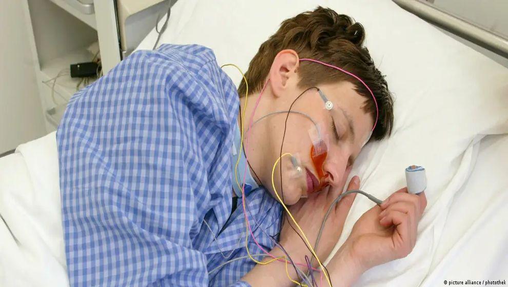 Uyku laboratuvarında narkolepsi hastasının biyosinyallerinin kontrol ediliyor